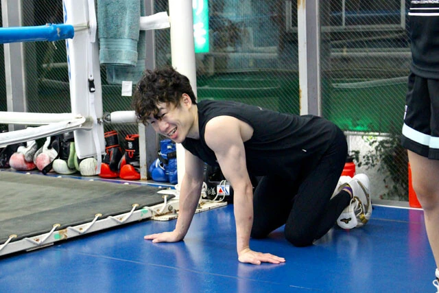 加藤はキッズコースの子供たちを見送るとスポーツドリンクを一口だけ含み、すぐに拳四朗との練習に備え始めた。