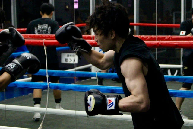 拳四朗はリング上でミット打ちをする練習生に遠慮するように、脇でゆっくりとシャドーを始めた。
