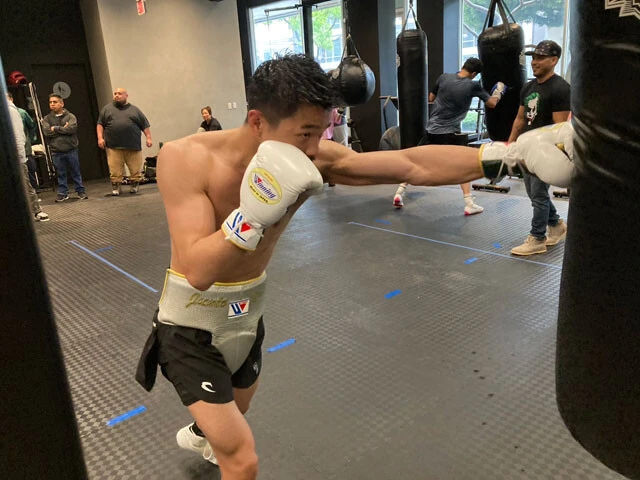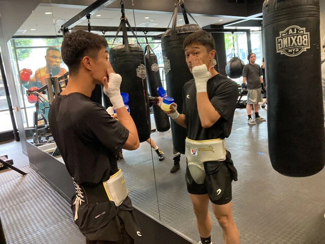 そのモンスターは、5月4日のラスベガスでの防衛戦を控え、4月23日にLAX国際空港に降り立った。今回、中谷がLAキャンプを開始した2日後のことである。WBA/WBC/IBF/WBO統一スーパーバンタム級チャンピオンは、バッゲージクレームで荷物を受け取ると、即、市内のジムに直行し、米国メディアの前で公開練習を行った。軽く動いた後、現地記者から中谷潤人戦について訊ねられると、「皆さん、見たいですか?」と逆に質問する。「Of course」なる声を聞くと「だからですよ」と笑顔で告げた。
