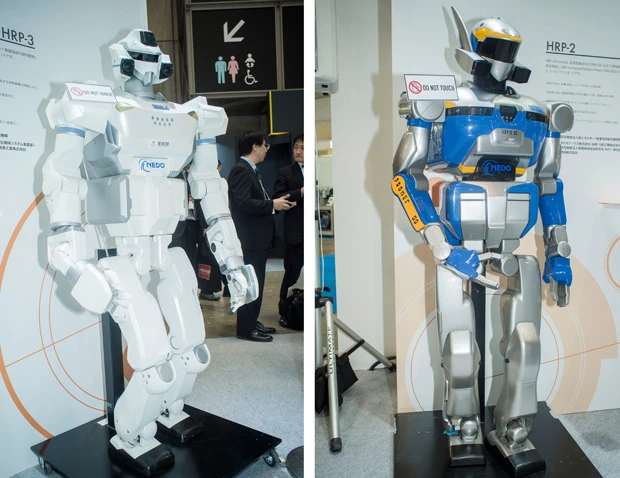 後継機である「HRP-3」はさらに複雑な作業が可能になった上に、関節軸部や電装実装部が防塵(ぼうじん)・防滴仕様となり、滑りやすい路面でも歩行が可能と多方面でバージョンアップ。日本の技術の神髄を見ることができる。
