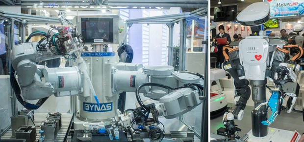 バイナスが開発した「'Duo'The RoboMeister」の特徴は、人のように2本の腕がある“双腕型”。薬品や化粧品分野の検体検査工程や電子製品などの組み立てを行なうロボットだ。