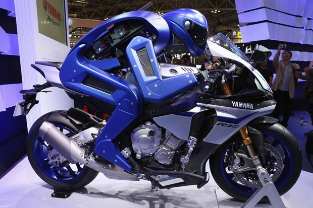 YAMAHAが開発中の「MOTO BOT(モトボット)」は“史上最高のライダー”と呼ばれるイタリアのオートバイレーサー、バレンティーノ・ロッシに勝利するために生み出された人型自律ライディングロボット。バイク自体は一般に市販されているものと全く同じで改造などもされておらず、ロボット自身が人間と同じように運転する。