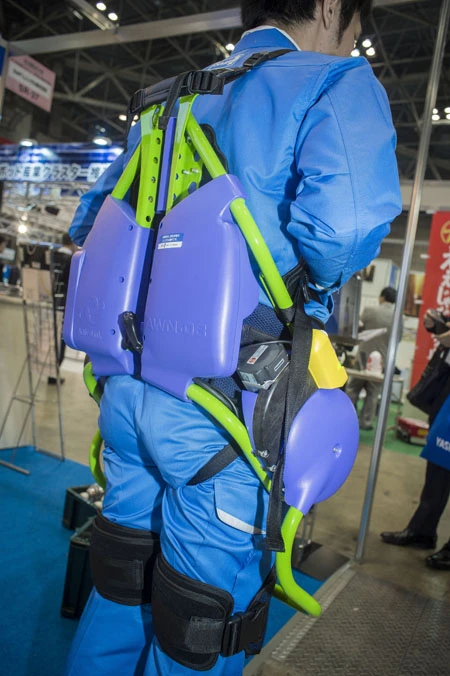 ■AWN-03これがあれば重量物の揚げ降ろしも体に負担が少なくラクラク。さらに上体を保持して搬送を補助するなど、自動で動作に追従してくれるスグレモノ。企業向けにレンタルもしている