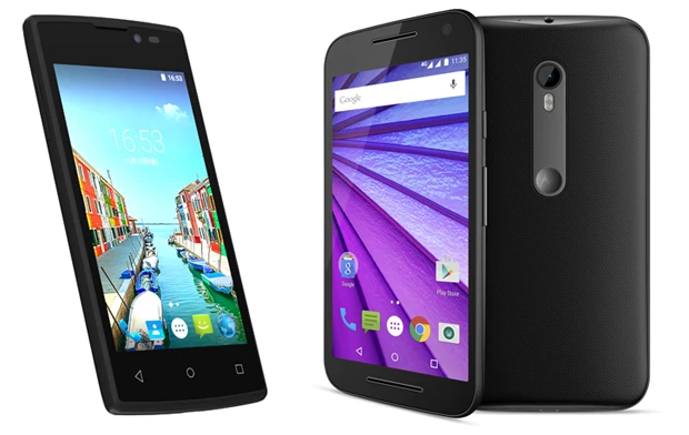 ●Moto G モトローラ/実勢価格2万7千円前後(右)SIMフリー機では希少な防水仕様! 最新OS、Android6.0へのアップデートにも対応し、5インチディスプレイの高性能モデル