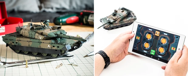 会社のデスクの上でもサクッと遊べる手のひらサイズの戦車ラジコンが登場です!このところラジコン業界で急増中なのが、プロポが付属しない製品だ。では、いったいナニを使って操作するのか? それは、スマホやタブレットなんですっ!