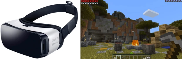 Minecraft:Gear VREdition【右】【左】Galaxyシリーズに対応した、スマホ用のVRゲーム機。ゲームだけでなく、Netflixとhuluにも対応しているので、映画をはじめとする各種動画コンテンツもお手軽に楽しめます【右】ブロックで、キャラや建物を作り、RPGからアクションまで自由自在に楽しめるゲーム。ユーザー数は1億人以上!