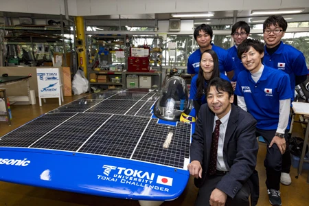 東海大学の世界最強のソーラーカーチームのメンバー。みんな現役の学生たちだ