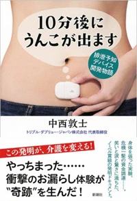 ■『10分後にうんこが出ます-排泄予知デバイス開発物語-』 新潮社 定価1404円(税込)アメリカ留学中のある日、激しい便意に襲われ、道の真ん中で豪快にヤラかした若き企業家。彼が思いついたのは、超音波を使って排泄時間を推定する画期的な機器の開発だった。ネットを駆使した仲間探し、鬼畜の人体実験、困難な資金調達、そして、その先に見えた「うんこ漏らし」がいない世界……! 全人類待望の「排泄予知デバイス」誕生秘話