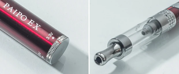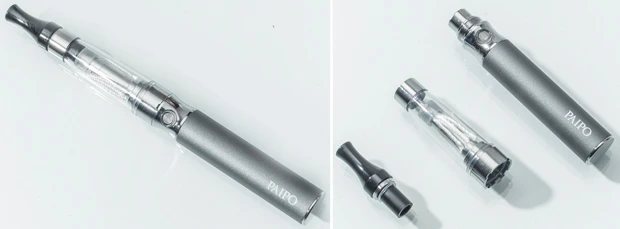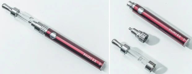 電子PAIPO EXマルマン/6800円+税【左】スイッチを押しながら、吸い込むだけで大爆煙が! 面倒な設定なくボリューム感ある煙を楽しめ、電子たばこの入門機として最適。リキッドや各種パーツも、取扱店が多いのでお手軽度高めですよ!【右】本体パーツは分離でき、洗浄やパーツ交換がカンタンにでき、各パーツの強度も十分!