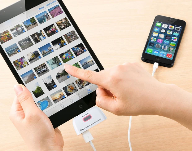 iOS内の画像・動画をはじめとするデータを、microSDに保存できるカードリーダー。データの保存には専用アプリを使用。保存したデータは、そのままAndroid端末に差して使用できるので、使い勝手最強! 重量約6g、全長約4cmという小型っぷりも、この商品ならでは!!