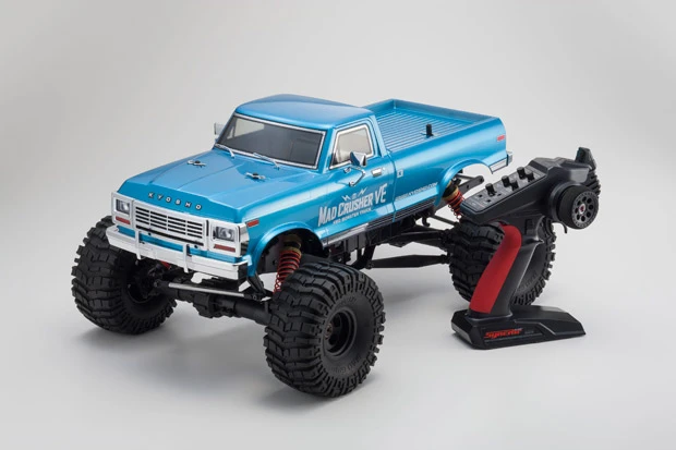 ★ビッグスケールの電動マシン! 1/8 スケール ラジオコントロール ブラシレスモーターパワード 4WD モンスタートラック マッドクラッシャー VE レディセット 京商/6万6000円+税タイヤだけでも直径150mmで、全長590mm、全幅376mmという超ド級サイズの電動RCカー。このサイズならではの迫力ある走りだけでなく、メッキパーツを多用したディテールも楽しめますよ!