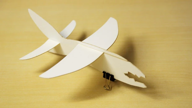 コンピューターによる最適化計算で、翼の位置や角度といったデザインを微調整した「一見飛ばなそうな紙飛行機」。どれもスイスイ飛んでいく。