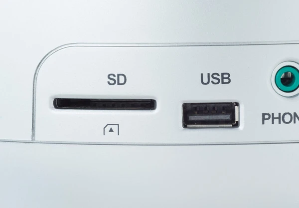 SDスロット、USBポートにメディアを差せば、録音・再生がOK! CD音源を大活用できる一台だ。各種スロットを本体側面に装備。 懐かしのaiwaロゴもプリント。