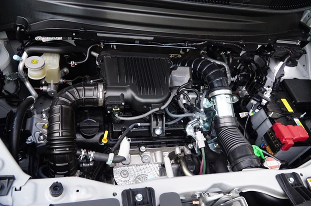 エンジンは去年デビューの新型スイフトRStに使われている直列3気筒DOHC1リットル直噴ターボエンジン+マイルドハイブリッドを搭載。最高出力は99馬力だが、1tの軽量ボディなので楽に引っ張り、スポーティな加速が味わえる。トランスミッションは燃費を意識したCVTではなく、オーソドックスなトルクコンバーター式の6速ATだ。走行モードをスポーツモードに切り替えると、高回転域まで吹け上がる。足回りにはフロントにスタビライザーがつき、専用チューニングのサスペンションが採用されている。