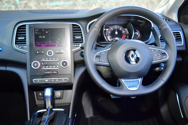 ところが、4代目メガーヌのスタイリングときたらどうだろう。フロント周りは、これまでになかったシャープでエッジが効いたディテールで緻密に描かれ、洗練された佇(たたず)まいに進化している。日本市場にはスポーツ仕様でハッチバックの「GT」と「GT-Line」、ワゴンモデルの「スポーツツアラーGT」の3モデルが導入されている。どれも大径ホイールを装着し、低く身構えた姿が勇ましい。