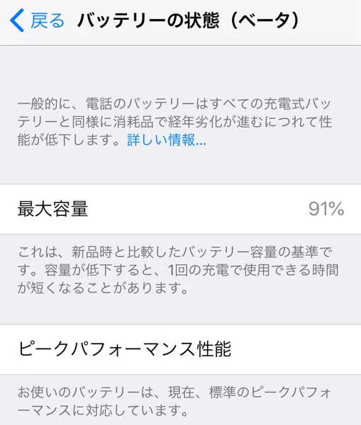 【設定→バッテリー→バッテリーの状態(ベータ)】から、詳細なバッテリー情報を表示する機能も追加された。