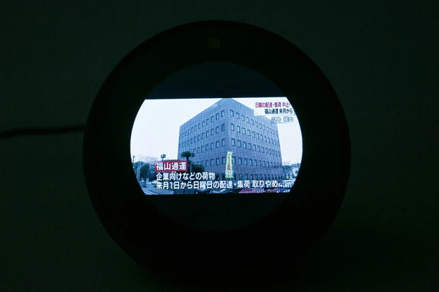「アレクサ、ニュース」と言えば、モニター部分に動画が表示。ただ、サイズは小さく画面左右も切れ気味。
