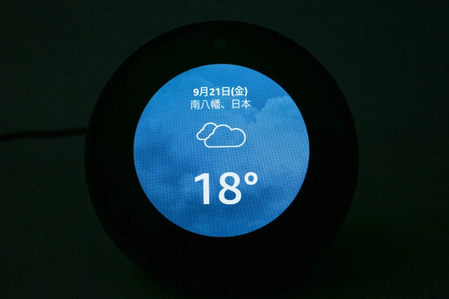 「アレクサ、天気」で天気予報を表示する。明日、明後日、週間といったワードの組み合わせも認識する。