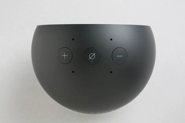 本体のボタンは音量調整と電源のみという超スッキリな配置。もちろん音量調整も音声で対応できる。