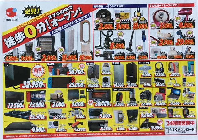 フリマアプリ大手メルカリが、「いかにも」なデザインのチラシ広告を新聞に折り込むという斬新な仕掛け(2018年12月12日付朝刊)。北海道と名古屋限定だったが、地域を超えてSNSでも話題が広がった