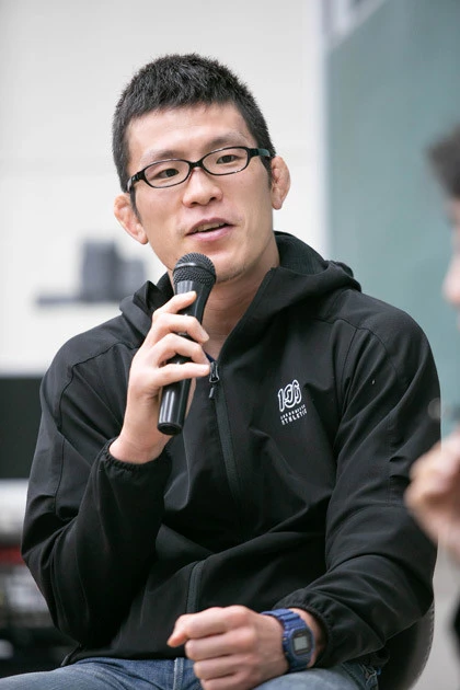 「スポーツエンターテイメントって、コンテンツづくりの話から抜けがちなので、実際にやっている方にじかに話を聞きたかった」と落合陽一(おちあい・よういち)は語る。果たして青木はどんなパフォーマンスを見せてくれるのか。