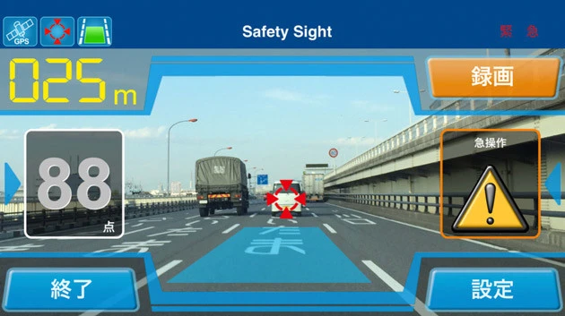 スマホのカメラを使用して前方車両の撮影、車間距離のチェックをするアプリ。前方の車両が発車したときのアラーム機能もあり。