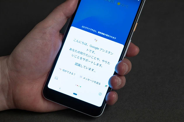 本体をギュッと握ると「Googleアシスタント」が起動。本体の横幅がスリムで握りやすく、片手での文字入力もしやすい。