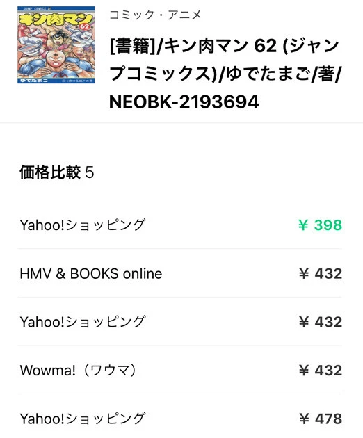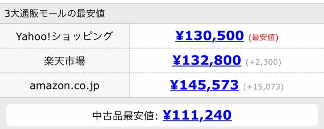 『Yahoo!ショッピング』『楽天市場』『Amazon.co.jp』など、大手ECサイトの最安価格を一括表示し、即確認できるのは便利。
