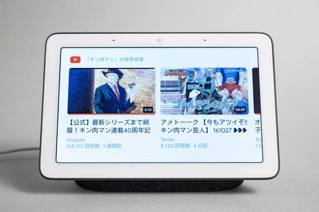 スマートスピーカーにディスプレイを搭載したことで、映画やニュースなど、エンタメをより楽しめるようになったのがポイント。特に『YouTube』との相性は最強レベルで、「おもしろ動画」や「子猫動画」といった大ざっぱな話しかけでも、がっつり動画の候補を表示してくれる有能っぷり!