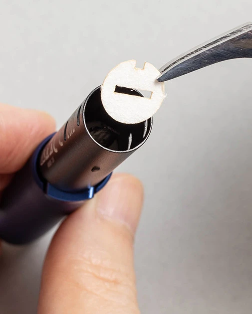 IQOSで意外と汚れがたまるのが、ブレードのつけ根部分だ。これはブレードのつけ根部分に装着するフィルターで、汚れたら取り替えるだけ! 日々のIQOS清掃の手間を軽減できますよ。