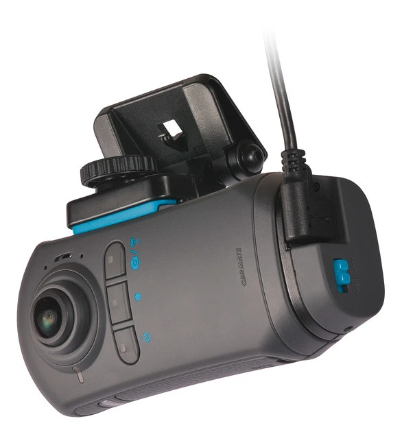 フロントガラスに設置する360度撮影可能なドラレコとして運用。さらに別売りの「バッテリーオプション」を装着すれば、アクションカムとしても使えますよ!