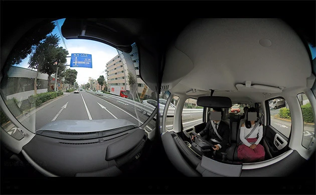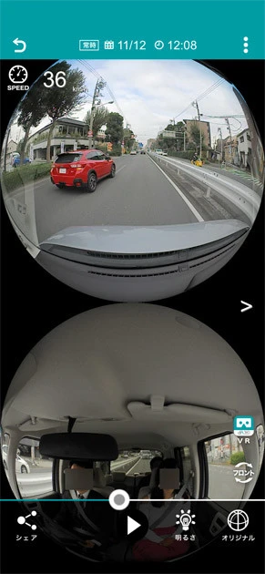 全天球録画で自車の左右も撮影され、あおり運転の対策にも効果絶大!