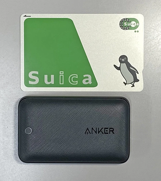 もちろんアダプターの端子は折り畳み可能。Suicaと比較してもこのサイズ感!