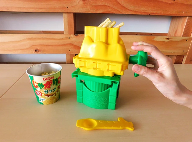 スナック菓子の「じゃがりこ」を砕き、お湯でふやかしマッシュポテト化! 付属のブリスターで団子や極太スティックが作れる。これは、おつまみ対応もOK!!