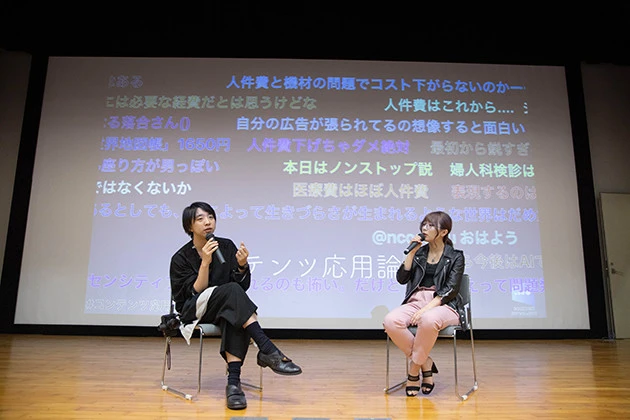 筑波大学で講義をする落合陽一(左)と辻 愛沙子(右)