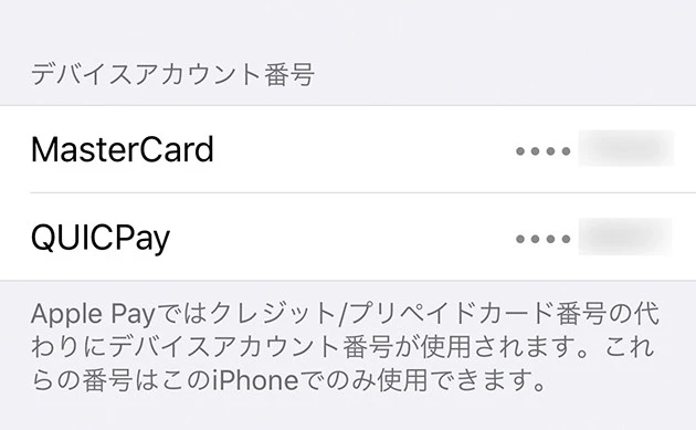 海外で利用したい場合はApple Payの設定から【デバイスアカウント番号】を確認。ふたつの番号が設定されていれば海外でも利用可能。