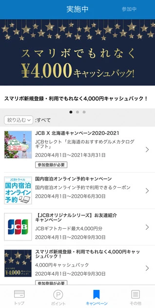 JCBと、銀行や企業のJCB提携カードで利用可能。アマゾンやビックカメラなど、獲得ポイントが倍増するECの優待店舗へのリンクもあって、ショッピングもここから!