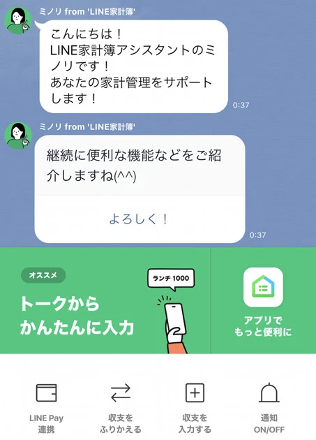 LINEのメッセージに支払い金額を入力したり、レシートを撮影して出金を管理。LINEの新クレカを見据えて今から、ぜひ!