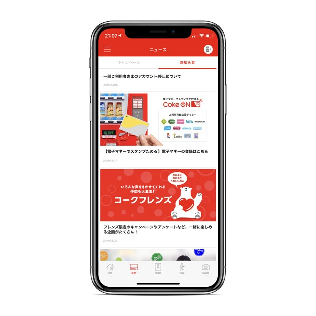 アプリに対応する自販機にスマホをかざしてスタンプをゲット。スタンプを15個集めれば無料で1本プレゼント。これ意外とすぐたまります。