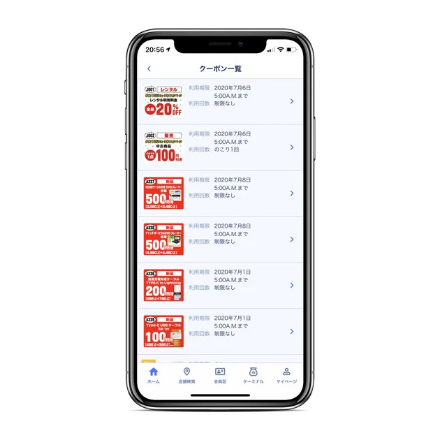 クーポンの利用方法はアプリ下部のメニューからクーポンを選択するだけ。あとは店舗でクーポンを提示して完了の簡単仕様。