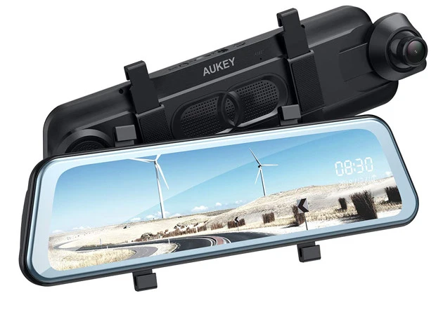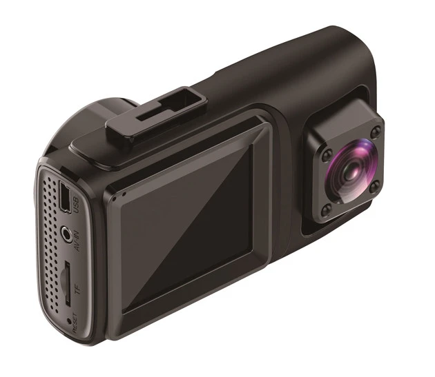 フロントウインドウに装着して前後同時録画。後方用のカメラは画角調整機能があり、左ハンドル車や車高の高い車でも利用しやすくなっている。駐車中の監視モードも搭載!