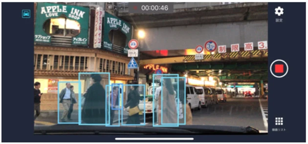 歩行者の多い交差点ではひとりひとり認識する。このように車両や人物をAIが認識し録画をスタートするのでストレージも節約できる。