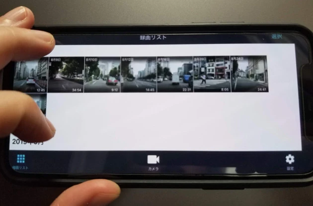 AI搭載で車体、人物など物体を感知して自動で録画するアプリ。専用のドラレコと比較すれば機能は絞られているが自車の前方撮影なら十分なスペック。上写真のように撮影動画の管理・再生が楽ちんなのはアプリならでは!