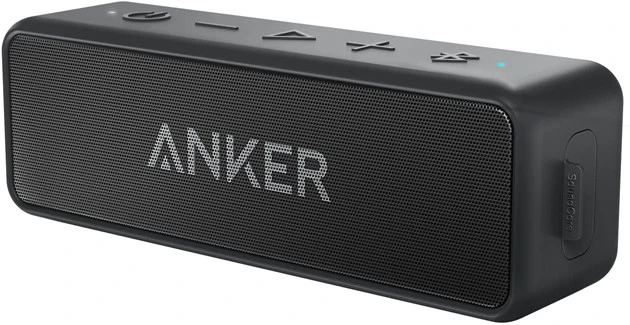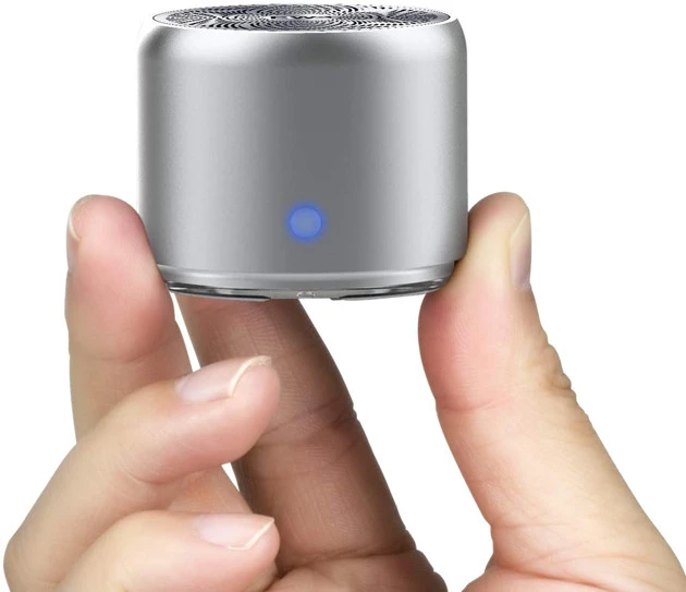 縦約7cm、横約9cmのコンパクトなスピーカー。デスクまわりでの利用はもちろん、防水仕様なのでお風呂の中でもそのまま使えますよ。