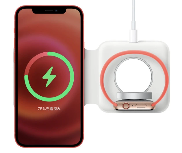 iPhone 12シリーズから新採用された、ワイヤレス充電や各種アクセサリーを装着できる機能、MagSafe。対応するiPhoneやAir Podsなどをまとめて充電できますよ!