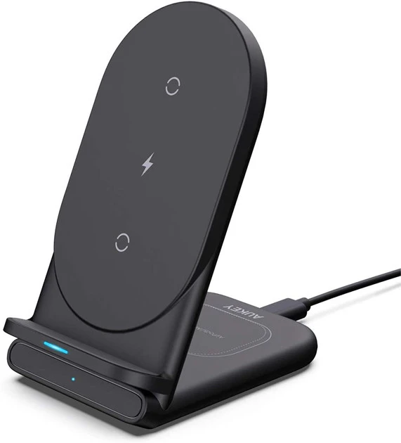 最近はイヤホンもワイヤレス充電対応モデルが激増中! こちらはスマホを縦横どちらに置いても充電でき、さらにイヤホンも同時充電が可能。