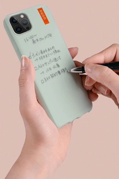 背面にボールペンでメモを書くことができるiPhoneケース。書いたメモは普通の消しゴムで消せ、何度でも繰り返し使用できる。