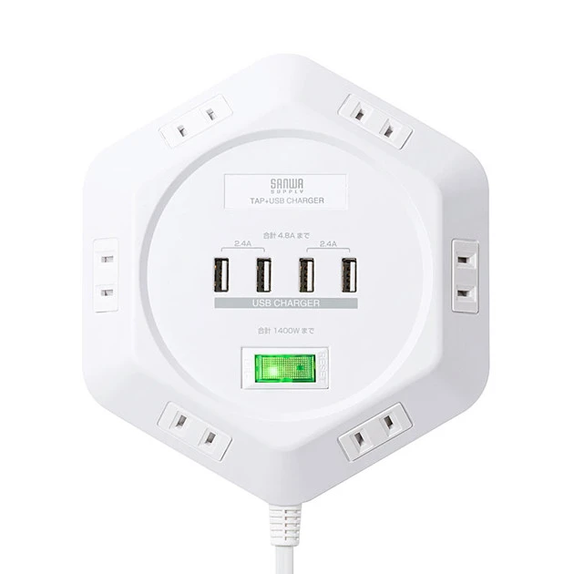 PC、タブレット、スマホ、さらにスピーカーやイヤホンの充電など、在宅ワークでは電源確保が超重要。AC電源6個、USB端子を4個も装備した、この給電モンスターなら万全です!