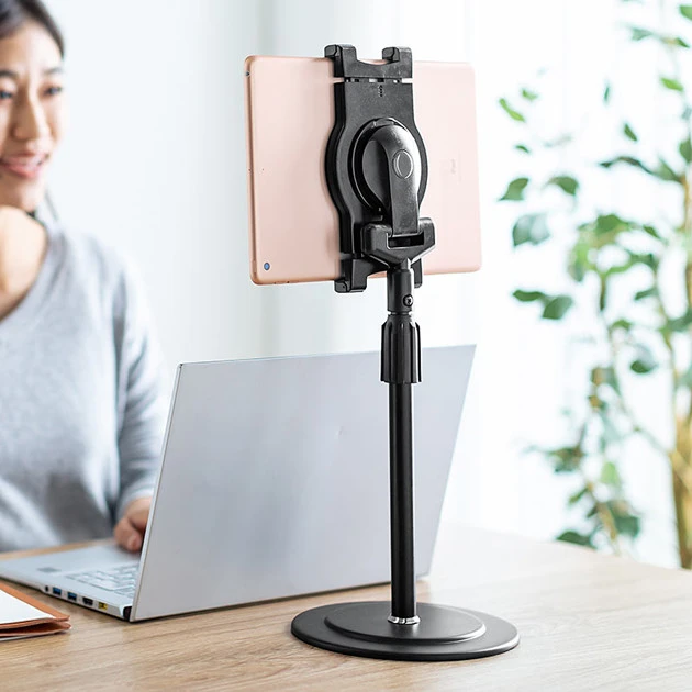 iPadをモバイルモニターとして活用する場合にそろえたいのが専用のスタンド。高さ調整ができるモデルはテレカンでも便利ですよ!