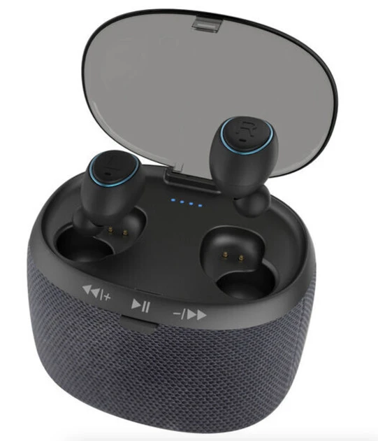 充電ケースがBluetoothスピーカーになっている斬新モデル。さすがに携帯性はマイナスだが、ウェブ会議でのマイク&スピーカー用途、ちょい音楽視聴なら価格的にも大アリ!